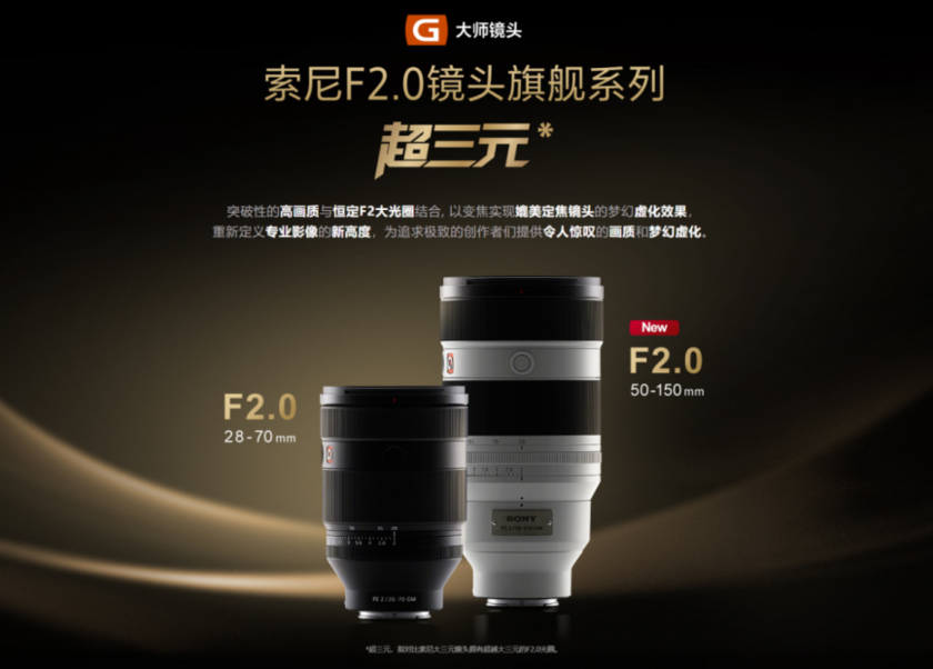 索尼镜头旗舰系列恒定F2大光圈变焦镜头 FE 28-70mm F2 GM及FE 50-150mm F2 GM