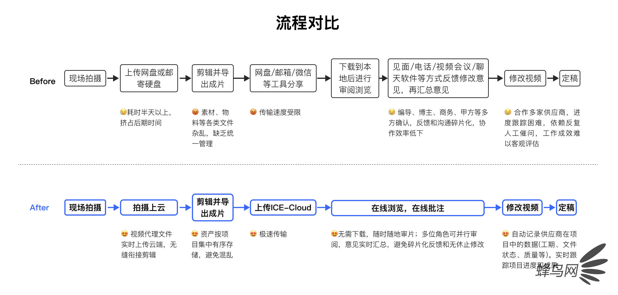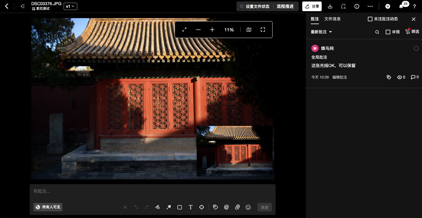 而且这里还有一个特别好的地方就是,对KOL团队来说,外景拍摄从来都是一次性机会:好不容易等来的理想天气,一旦错过就很难复刻,补拍的时间和成本根本耗不起。这时候即拍即传功能就成了关键,比如我有一次在故宫拍摄,好不容易等来了一个好的天气,我在前方拍摄,直接上传,公司项目经理就能第一时间看到我所拍摄的内容,并第一时间核对画面是否达到需求、细节有没有遗漏,哪怕发现构图偏差、道具摆放失误这类问题,也能立刻叫停调整,不用等拍摄结束后才发现纰漏,白白浪费来之不易的拍摄条件。对于特别重要的拍摄,博主、编导、甲方客户多方参与审片,微信截图+文字描述+时间码备注的反馈方式,常常导致意见散乱、理解偏差,反复修改的成本极高。ICE-Cloud的在线审片功能,可以直接让沟通效率实现了质的飞跃。