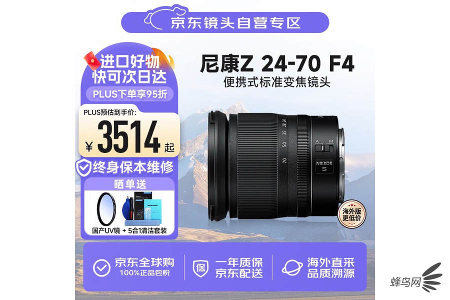 尼克尔Z 24-70mm f/4 S是尼康全画幅微单系统的标准变焦镜头,以轻便+恒定光圈为核心卖点,覆盖24mm广角到70mm中长焦的实用焦段,适配日常记录、旅行风光、人像静物等多场景拍摄。它平衡了画质与便携性,搭配VR防抖与快速对焦,既是Z系列入门用户的理想套机镜头,也是追求轻量化出行的摄影爱好者的挂机首选,性价比突出。目前这支镜头的售价为3599元。